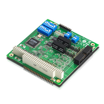 Carte série PC/104 à 2 ports RS-422/485, connecteur 20-pin, de 50 à 921.6 Kbps, technologie ADDC, FIFO 64 bytes, contrôle du flux logiciel sur puce, IRQ, E/S et interface série réglables par cavalier ou switch DIP, protection ESD 15 KV, supporte Windows CE 5.0 et Windows XP