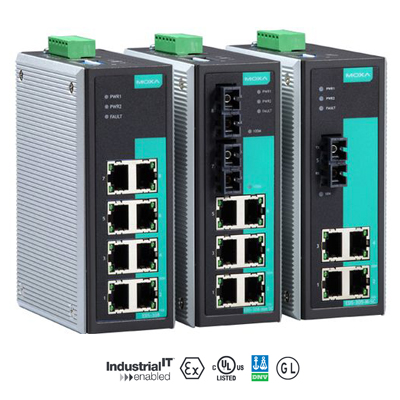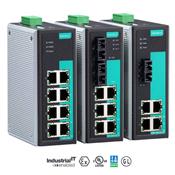 Commutateur Ethernet non administrable 7 ports 10/100BaseT(X), 1 port 100BaseFX monomode connecteur SC 80km,, double alimentation redondante 24 VDC, -10 à 60 °C