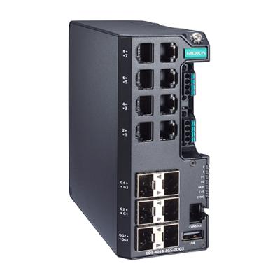 Commutateur Gigabit Ethernet manageable 8 ports 10/100BaseT(X), 4 ports 100/1000BaseSFP, 2 ports 1000/2500BaseSFP, module PWR-105-HV-I, double alimentation 12/24/48 VDC, température de fonctionnement -10 à 60 °C
