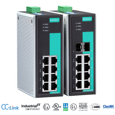 Commutateur Ethernet non administrable 8 ports full Gigabit 10/100/1000BaseT(X), jumbo frame jusqu'à 9.6 KB, sortie relais et alarme, double alimentation redondante 12/24/48 VDC, -10 à 60 °C