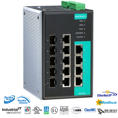 Commutateur industriel full Gigabit manageable, 4 ports 10/100/1000BaseT(X) et 5 ports combo 10/100/1000Base(TX) ou 1000BaseSFP, températures 0 à 60 °C