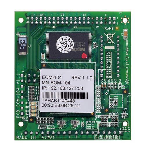 Kit d'essai du Module de commutation Ethernet administrables embarqués à2ports 10/100BaseT(X) / 2 ports 100BaseFX, port console RS-232, redondance avec Turbo Ring et RSTP/STP, alertes SNMP et e-mail, très basse consommation, températures étendues -40 à 75 °C