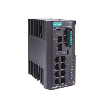 Pare-feu IPS industriel avec 8 ports 10/100/1000BaseT(X) et 2 multiports SFP GbE, gestion centralisée via Security Dashboard Console, 1 an de mises à jour de modèles incluses, température de fonctionnement de -10 à 60 °C