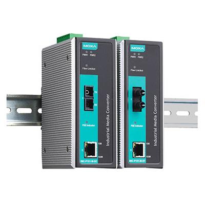 Convertisseurs Ethernet PoE vers fibre optique, 10/100BaseT(X) vers 100BaseFX, compatible IEEE 802.3af, monomode, connecteur ST, compatible IEEE 802.3/802.3u, double alimentation redondante, 0 à 60 °C