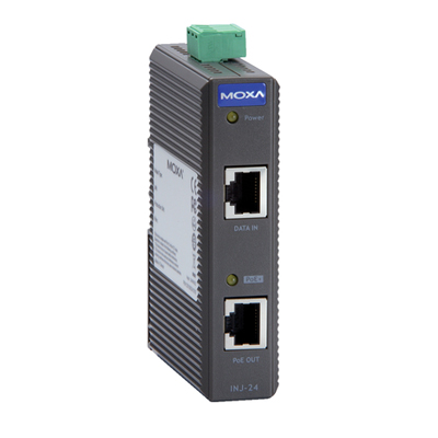 Injecteur industriel IEEE802.3af/at PoE, puissance maximale de 30W à 24/48 VDC, températures 0 à 60°C