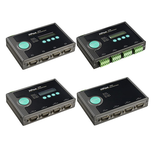 Serveur de périphériques série RS-422/485 à 4 ports, connecteur DB9 mâle, avec écran LCD, 50 bps à 921.6 Kbps, alimentation 12-48V DC, températures 0 à 55 °C