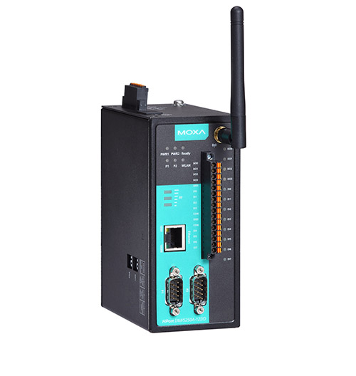 Serveurs de périphérique sans fil IEEE802.11a/b/g/n avec 2 ports série RS-232/422/485, 8 DI et 4 DO isolées 3kV, carte microSD 32GB, 0 à 55 °C