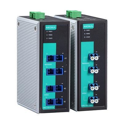 Unité de dérivation 4 ports fibre monomode connecteurs SC, connexions Ethernet Fast, Gigabit et 10 Gigabit, double alimentation 12 / 24 / 48VDC redondante, consommation ultra-faible 0,72 W, boîtier IP30, températures -20 à 70 °C