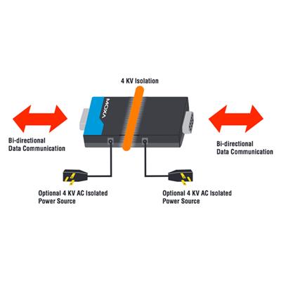 Isolateur RS-232 alimenté par port, 4 canaux d'isolation 4 KV RMS pour 1 minute, connecteurs DB9F et DB9M, protection série 15 KV ESD, vitesse 50 bps à 921.6 Kbps, 0 à 60 °C